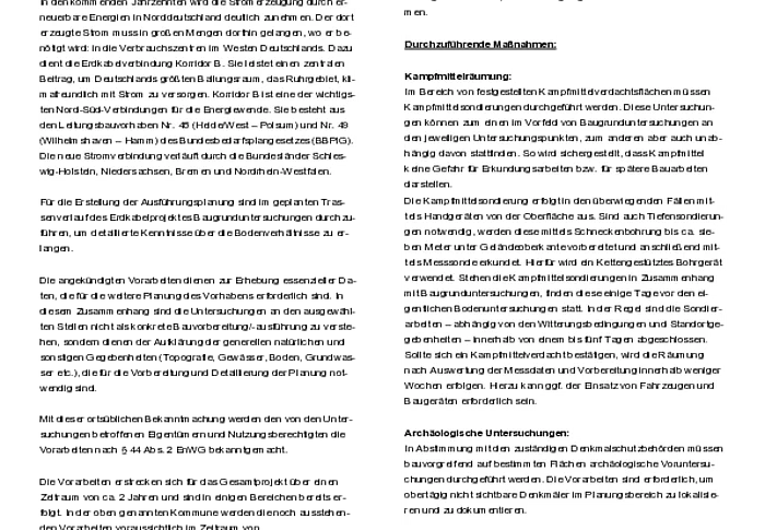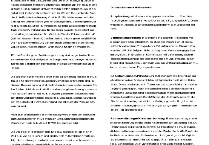Amprion - Ankündigung von Kartierungsarbeiten für die Trassenplanung im Bereich der Gemeinde Epenwöhrden Erdkabelverbindung Korridor B